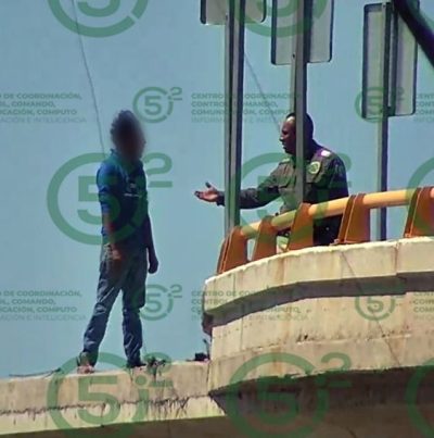 San Luis Potosí, S.L.P.- Elementos de la Guardia Civil Estatal impidieron que un joven se lanzara de la parte alta...