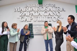 -En este espacio, antes un baldío, se construyeron 10 aulas, una Dirección, plaza cívica, barda perimetral, área de juegos infantiles,...