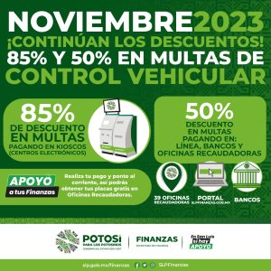• En apoyo a la economía de las familias, en multas de control vehicular se otorgará el 85 por ciento...