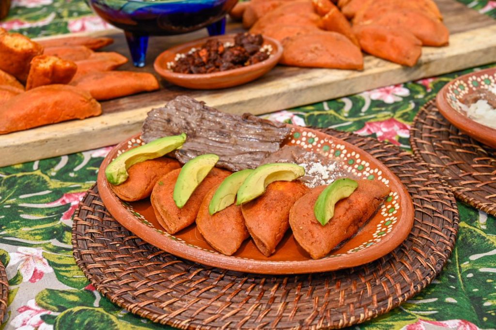 Recordó que este emblemático platillo surgió en 1919, cuando doña Cristina Jalomo, al mezclar accidentalmente la masa de nixtamal con chile seco, creó una masa rojiza que aprovechó para elaborar tortillas, las cuales rellenó con queso, cebolla y salsa, para después freírlas en manteca y venderlas en la Plaza principal, donde rápidamente se ganaron el gusto de la población.