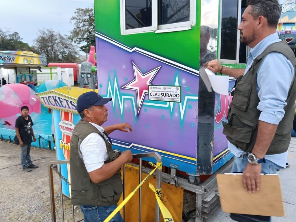 Personal de la CEPC encontró diversas inconsistencias dentro de minuciosas revisiones al juego mecánico “El Pulpo”, procediendo a colocar los sellos de clausura.