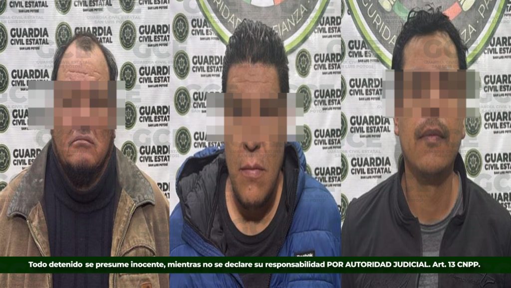 Derivado de la Estrategia Integral de Seguridad, así como de las labores de inteligencia y los operativos de vigilancia en las cuatro regiones, en el municipio de Santa María del Río, la Guardia Civil Estatal (GCE), detuvo a tres personas por probables ataques a las vías de comunicación y extorsión, luego de que un afectado denunciara los hechos ante las autoridades.