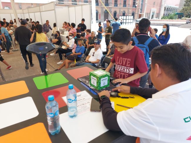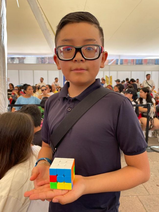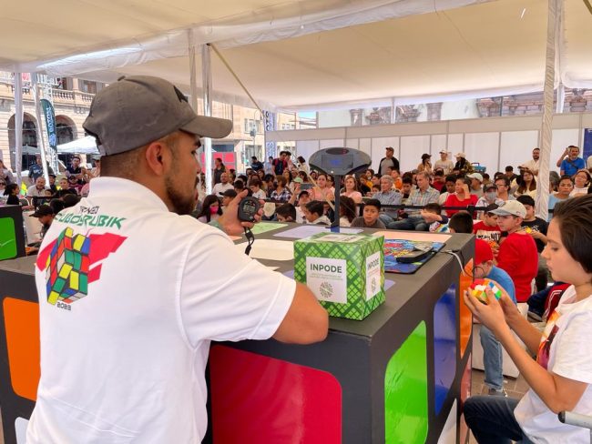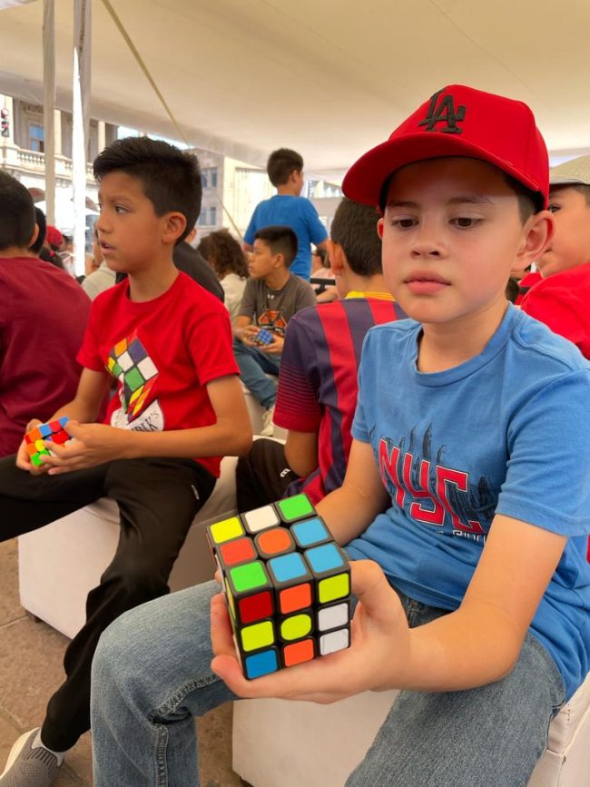 • En la plaza de Los Fundadores, niñas, niños y jóvenes demostraron su habilidad y agilidad mental para resolver los cubos