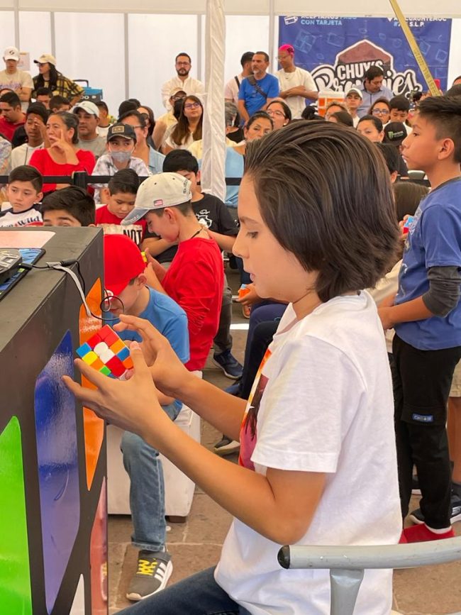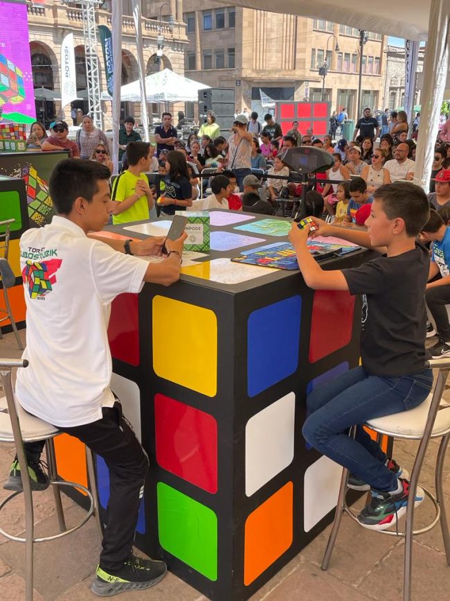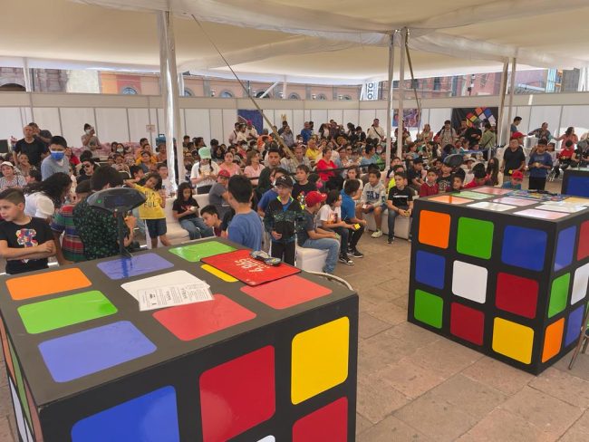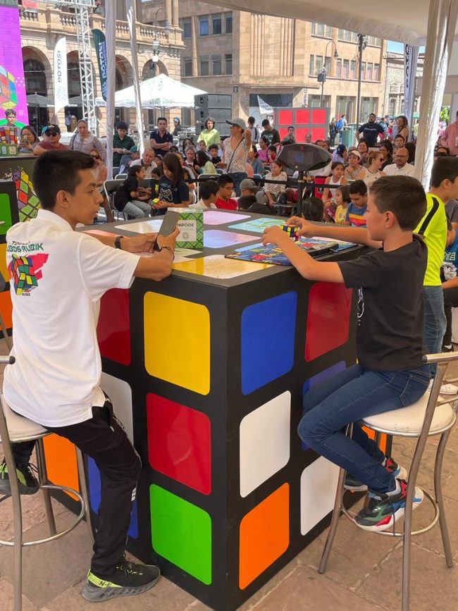 Este sábado docenas de niñas, niños y adolescentes potosinos finalistas del Torneo Estatal de Cubo Rubik organizado por el Gobierno estatal, vivieron momentos de adrenalina y destreza en la plaza de Los Fundadores, donde demostraron sus habilidades como la concentración y la agilidad mental para resolver los cubos en cuestión de segundos.