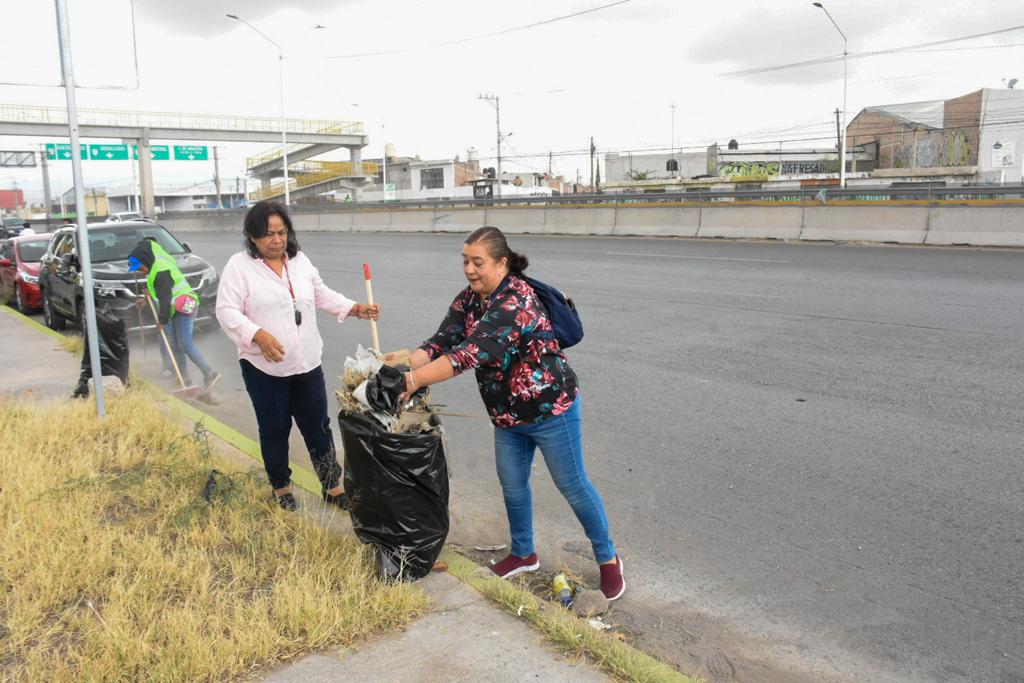 ●Con la colaboración de más de 250 recolectores particulares y personal operativo, Leonor Noyola encabeza limpieza total en laterales del Circuito Potosí.
