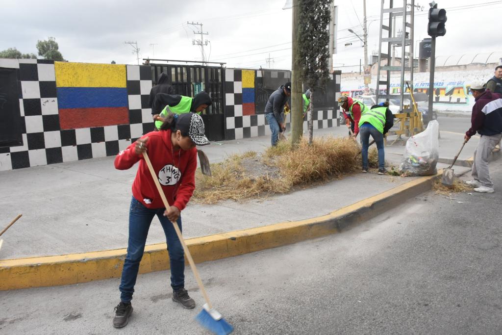 Con escobas y utensilios para labores de limpieza, la jornada se dividió en diversos grupos que iniciaron con gran entusiasmo con la mejora de la imagen urbana de esta importante vialidad por la que circulan miles de automovilistas diariamente. Entre las actividades destacan: el barrido manual, retiro de maleza, desechos y escombro, en todo el Circuito Potosí hasta la entrada al municipio, tanto en la arteria como lotes baldíos de zonas aledañas.