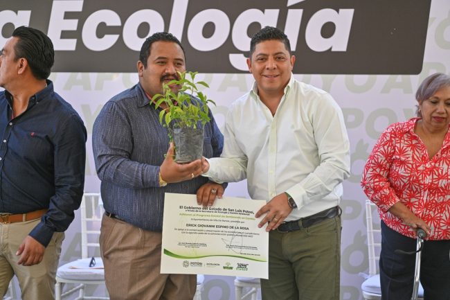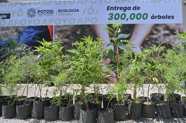 El Programa de Reforestación en el Estado entregará hasta 5 mil árboles de distintas especies, como forestales, frutales y polinizadoras a Cárdenas, Cerritos, El Naranjo, Rioverde, Soledad de Graciano Sánchez, Tierra Nueva, Venado, Villa de Arriaga, Villa de Reyes, Villa de Ramos y Salinas de Hidalgo, junto a un Certificado de Adopción con el compromiso de acompañar los esfuerzos de esta estrategia. En el evento se entregaron de manera simbólica especies como Jacaranda, Pirul Chino, Palo Azul, Encino, Mezquite, Guayabo, Ciruelo, Durazno, Limón, entre otros.