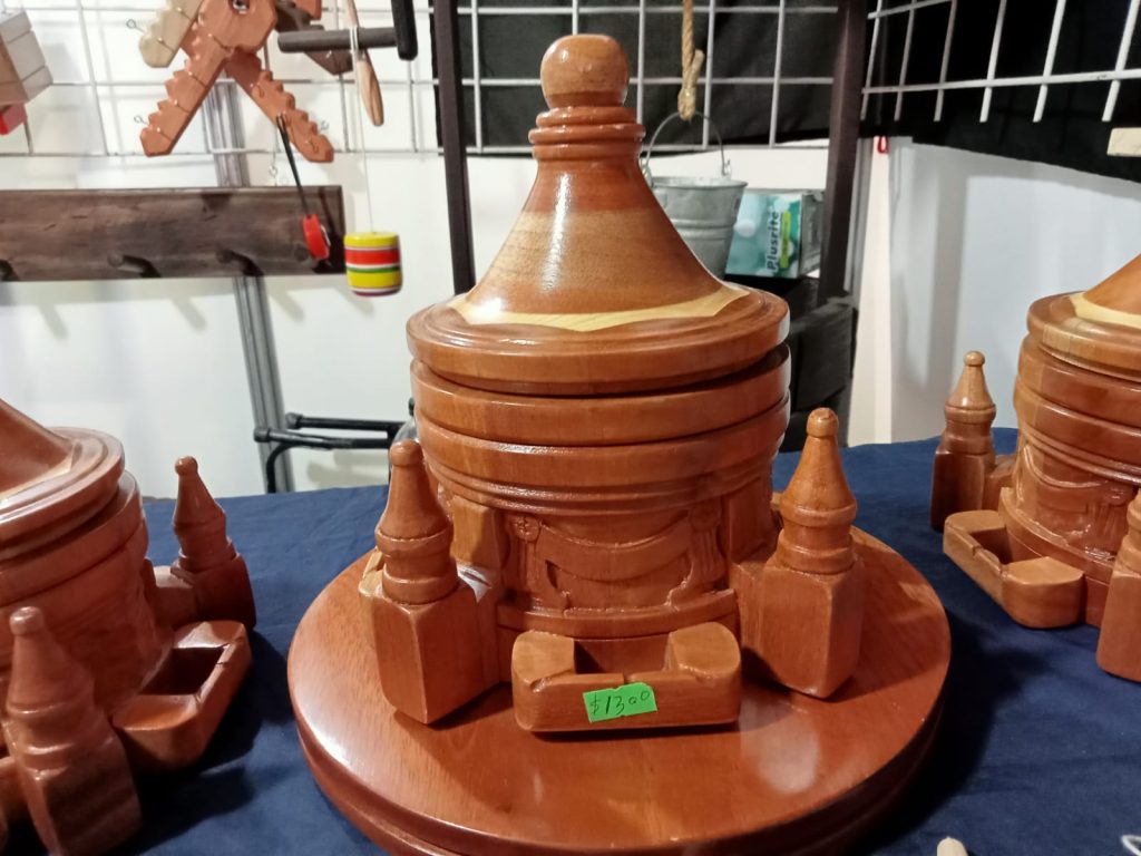 Entre las creaciones más notables del arte en madera sobresalen la Caja del Agua, trenes, rueda de la fortuna, trompos, baleros, pirinolas, yo-yos, matracas, sonajas, máquinas, tráileres, alhajeros, portallaves y muchas cosas más para utilizar en decoración de interiores, tanto en casas como en oficinas.