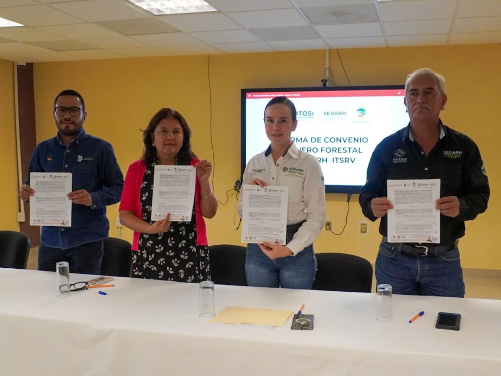 Para impulsar más apoyo en reforestación y cuidado del medio ambiente en las cuatro regiones, como lo ha instruido el Gobernador Ricardo Gallardo Cardona, la Secretaría de Desarrollo Agropecuario y Recursos Hidráulicos (Sedarh) firmó un convenio de colaboración con el Instituto Tecnológico Superior de Rioverde (ITSRV) para producir árboles y plantas endémicas que se distribuirán en zonas de poca vegetación de todo el Estado.
