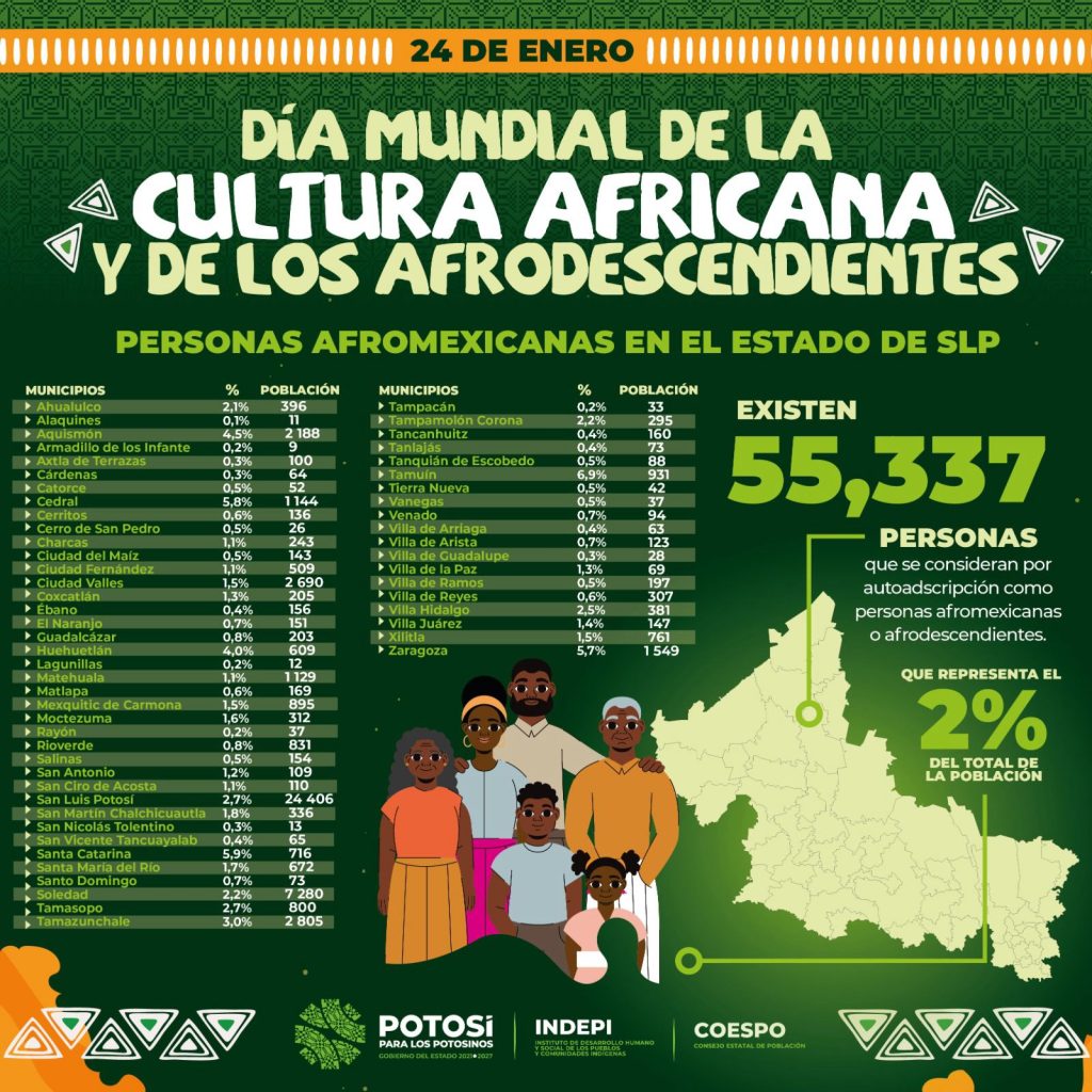 - En San Luis Potosí radican 55 mil 337 personas afrodescendientes distribuidas en los diferentes municipios