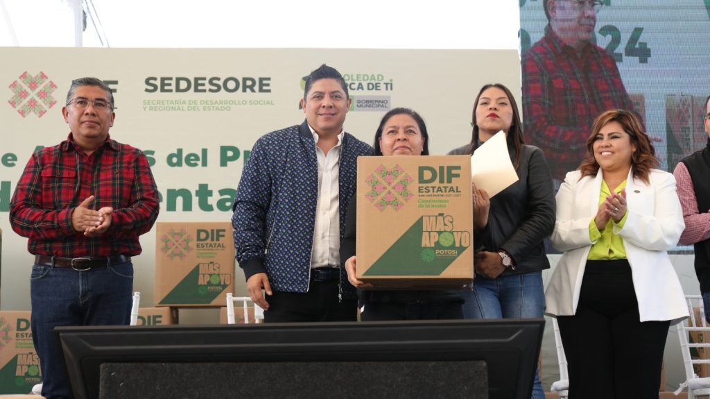 Miles de familias de Soledad de Graciano Sánchez recibieron más apoyo del Gobernador de San Luis Potosí Ricardo Gallardo Cardona, quien este martes entregó el programa Seguridad Alimentaria en la colonia San Luis 1, donde reiteró que su Gobierno continuará trabajando para llevar más bienestar, servicios, infraestructura y programas sociales a las cuatro regiones, para que las y los potosinos tengan mejores condiciones de vida.