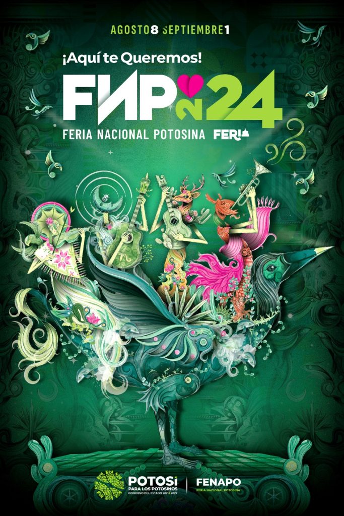 La Feria Nacional Potosina (Fenapo) 2024 se complace en presentar su cartel oficial, una obra inspirada en la corriente surrealista que San Luis Potosí que ha acogido como un tesoro, que captura los contrastes mágicos y enigmáticos del Estado, desde su clima hasta su arquitectura, fauna y flora, destacando a San Luis Potosí como un lugar donde los sueños se hacen realidad.