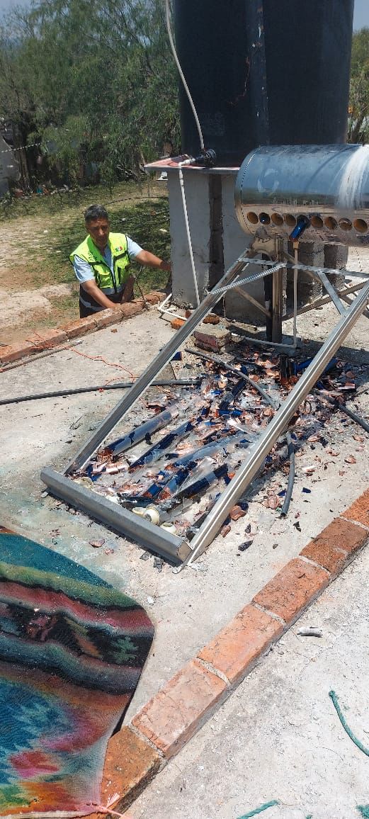 Detalló que las principales afectaciones por el granizo fueron daños en los techados de lámina de algunas viviendas; a 70 calentadores solares; vidrios de ventanas y aproximadamente 50 vehículos sufrieron afectación a sus parabrisas, además de la pérdida de 35 aves de corral.
