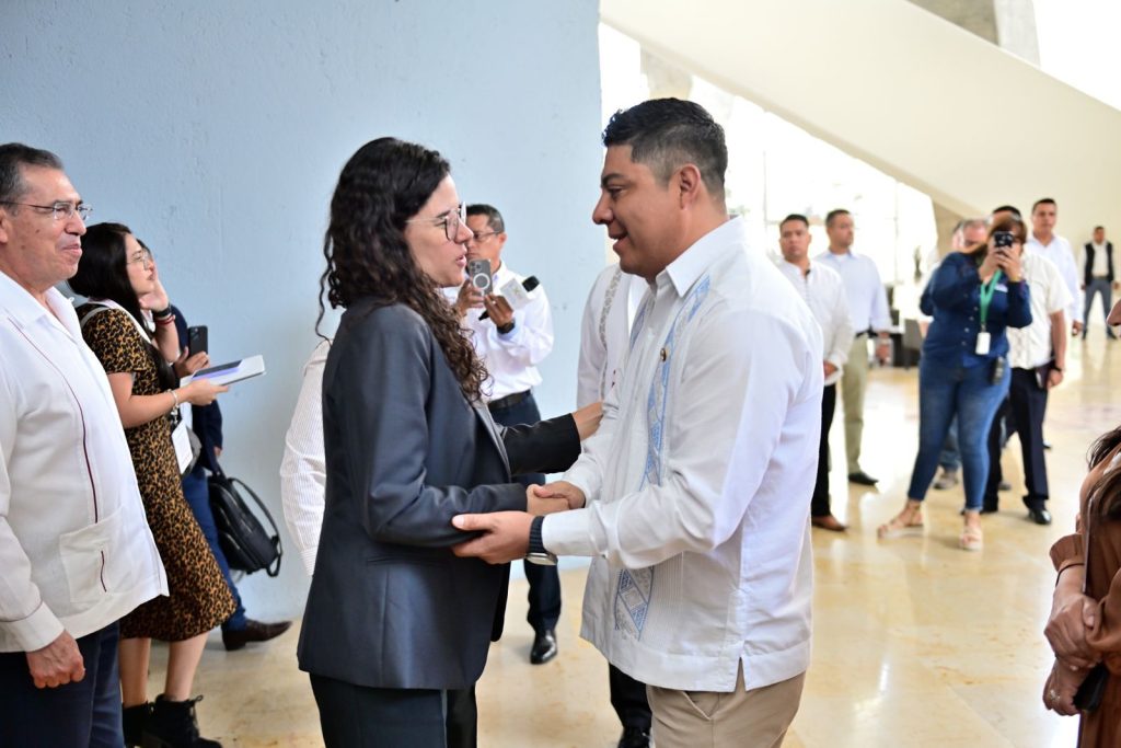• Luisa María Alcalde Luján, Rosa Icela Rodríguez Velázquez y Claudia Sheinbaum Pardo, destacaron la labor del Mandatario Potosino