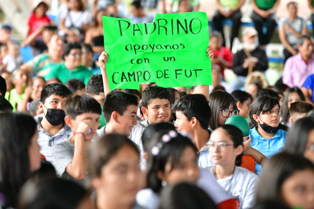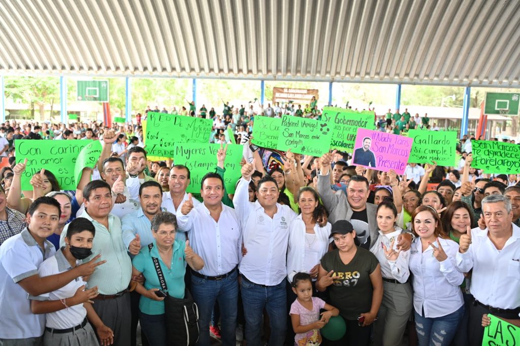 Con un recibimiento lleno de entusiasmo, muestras de respaldo y de agradecimiento de cientos de alumnas y alumnos, madres y padres de familia y personal docente de la secundaria general Benito Juárez, Gallardo Cardona dijo que, se avanza con los compromisos que generan bienestar para las y los potosinos, con acciones en apoyo a estudiantes de escasos recursos de todo el Estado, que fueron abandonados por la herencia maldita.