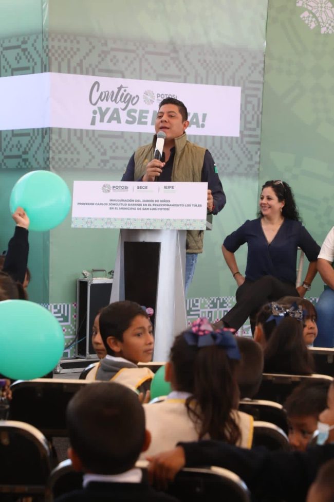 Autoridades educativas y madres de familia, beneficiarias de la inauguración del jardín de niños Carlos Jonguitud Barrios, calificaron la entrega de esta obra como un sueño más cumplido por el Gobernador de San Luis Potosí Ricardo Gallardo Cardona, luego de que por más de 30 años las y los niños recibían sus clases en hacinamiento, en una casita, sin baños ni patio dignos, ante la indolencia de administraciones estatales anteriores.