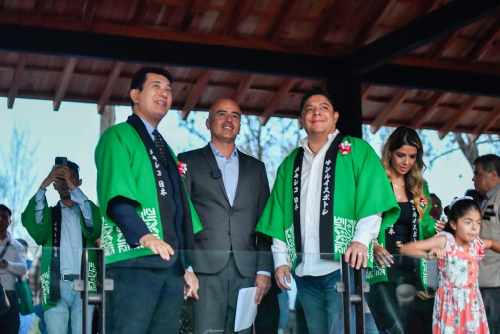 En una emotiva ceremonia, el Jefe del Ejecutivo Estatal, hizo el corte inaugural y develó junto con el Embajador de Japón, Noriteru Fukushima, la placa que conmemorará este importante día para las y los potosinos, ya que se trata de un espacio destinado al sano esparcimiento y realización de actividades culturales para niñas, niños, jóvenes, adultos y personas de la tercera edad, a través de una temática oriental con el apoyo de la Asociación Nikkei en San Luis Potosí.