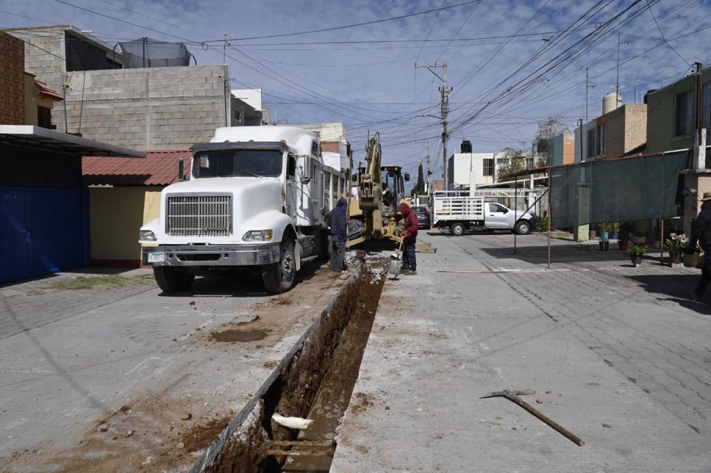 El Alcalde explicó que actualmente se intervienen nueve calles del circuito principal, de las cuales seis ya fueron concluidas; en estas calles se detectaron daños severos en la red existente, con tuberías deterioradas que ocasionaban escurrimientos y brotes de aguas residuales frente a los hogares; los trabajos consideran la sustitución de tubería con diámetros de 12 pulgadas, la reposición de más de mil 670 metros lineales, la construcción de pozos de visita, excavaciones, rellenos y la reconstrucción de concreto hidráulico, que garantizan un funcionamiento duradero y seguro conforme a la planeación municipal.