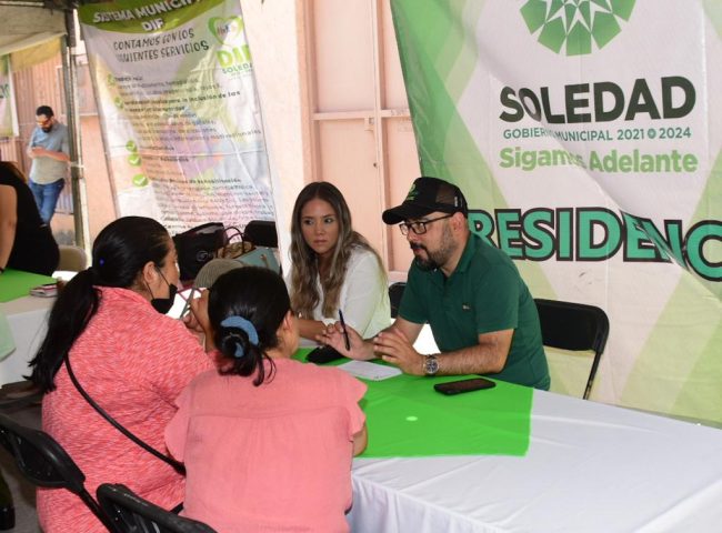 El Ayuntamiento de Soledad de Graciano Sánchez visitó este martes la colonia Nuevo Testamento, con la finalidad de acercar y reiterar a las familias del municipio la dinámica de acercamiento y atención directa que impulsa la Alcaldesa Leonor Noyola Cervantes, con la presencia de diversas áreas que ofrecen e informan sobre los programas y trámites ciudadanos.