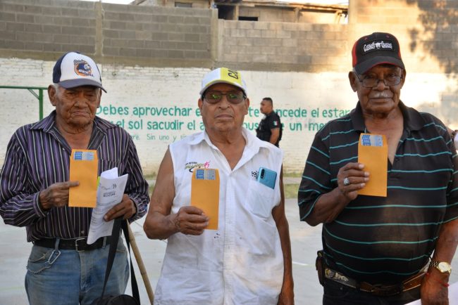En estos tres sectores del municipio, se congregaron mujeres y hombres adultos mayores de decenas de colonias para recibir la cantidad económica de dos mil pesos, monto que les permite principalmente satisfacer la compra de medicamento y alimentación.