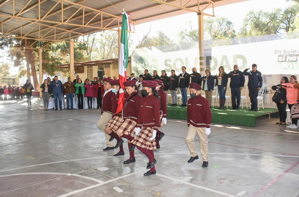 Haciendo hincapié en el fortalecimiento de los ideales e identidad nacional entre las y los estudiantes de la escuela primaria “Rafael Ramírez”, autoridades del Ayuntamiento de Soledad de Graciano Sánchez y educativas, conmemoraron el 107 Aniversario de la Promulgación de la Constitución Política de los Estados Unidos Mexicanos de 1917, evento presidido por el secretario General, Ernesto Jesús Barajas Abrego, en representación de la Alcaldesa, Leonor Noyola Cervantes.