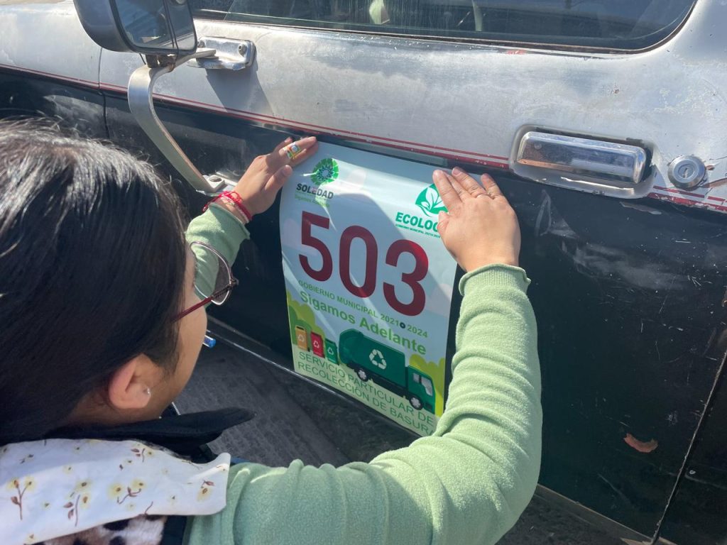 Con la premisa de fortalecer la actividad económica de casi 500 recolectores de residuos en Soledad de Graciano Sánchez, y hacer valer el reglamento ambiental, la Dirección de Ecología Municipal realiza la actualización de refrendos 2024 con la colocación de engomado y verificación de permisos correspondientes de circulación, informó la titular del área, Teresa Zúñiga Maldonado.