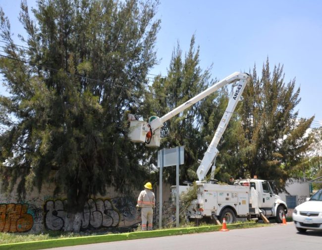 Evitar incidencias derivado de las condiciones climatológicas que pongan en riesgo a la ciudadanía, es una de las premias de la Alcaldesa de Soledad de Graciano Sánchez, Leonor Noyola Cervantes; por ello, las Direcciones de Servicios Municipales y Ecología, en coordinación con la Comisión Federal de Electricidad (CFE), trabajan en la poda de un padrón de más de 70 árboles que por su altura tienen contacto con cables de alta y baja tensión, lo cual representan un riesgo en vías públicas.