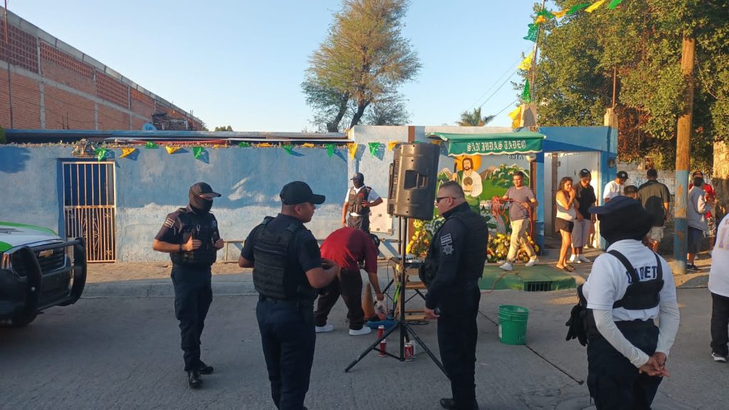 Para dar cumplimiento con las indicaciones de la alcaldesa de Soledad de Graciano Sánchez, Leonor Noyola Cervantes, Seguridad Pública Municipal, en coordinación con la Guardia Civil Estatal, desplegó el operativo «San Judas Tadeo», para evitar que se realicen bailes ena vía pública durante los festejos del santo mencionado, en el cual se cancelaron 10 eventos durante la madrugada de este 28 de octubre.