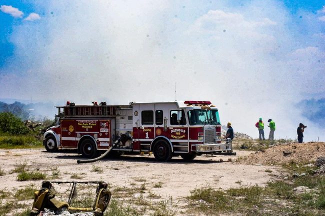 Desde las primeras horas de este lunes, y derivado del procedimiento de clausura que se llevó a cabo en el tiradero de desechos sólidos urbanos situado en Fracción Rivera, el Ayuntamiento de Soledad de Graciano Sánchez, a través de diversas áreas municipales, iniciaron con los trabajos de remedición en el sitio, con el apoyo del Cuerpo de Bomberos a fin de extinguir la humareda activa, que hasta ayer quedó liquidada en más del 80 por ciento.