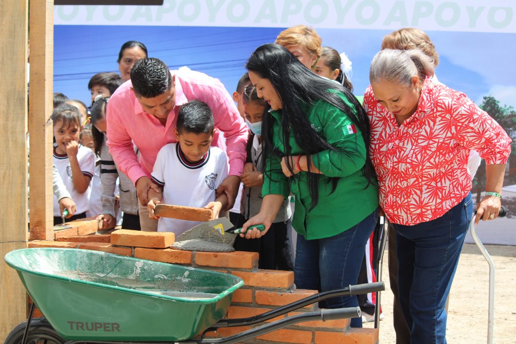 • Este miércoles, la Alcaldesa, Leonor Noyola y el Gobernador, Ricardo Gallardo, arrancaron la construcción de aulas, sanitarios, canchas y acciones complementarias en dos escuelas del municipio.