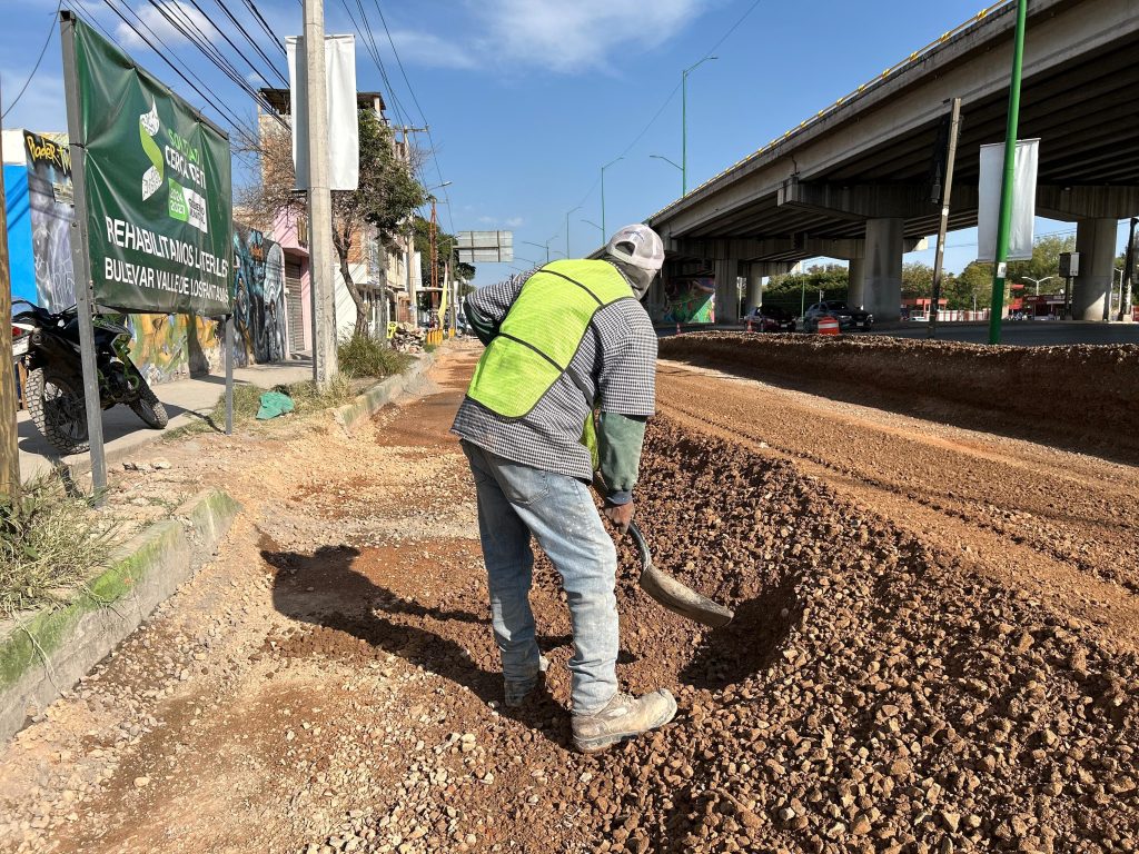 El Ayuntamiento de Soledad de Graciano Sánchez, en colaboración con el Gobierno del Estado, avanza rápidamente en la rehabilitación de la lateral del bulevar Valle de los Fantasmas en las colonias Hogares Ferrocarrileros en sus tres secciones, cumpliendo con el plan de mejora de la infraestructura urbana que externaron el Gobernador, Ricardo Gallardo Cardona y el Alcalde Juan Manuel Navarro, en beneficio de la seguridad vial de miles de automovilistas y peatones.