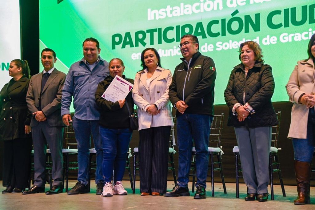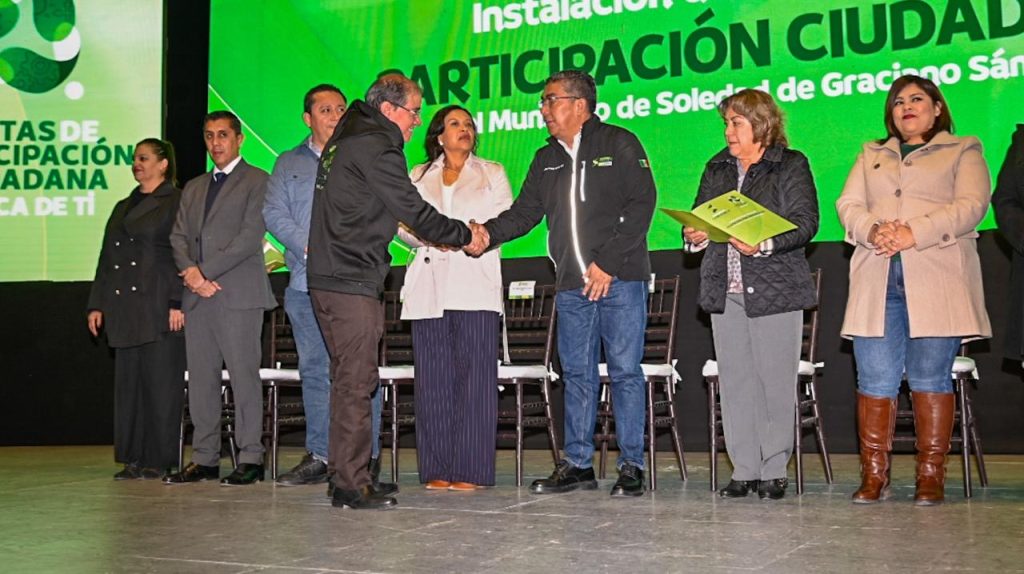 En un evento solemne que reafirma el compromiso de cercanía con la población y realza la importancia del involucramiento de las y los ciudadanos en la toma de decisiones gubernamentales; el Alcalde de Soledad de Graciano Sánchez, Juan Manuel Navarro Muñiz tomó protesta a las y los integrantes de las Juntas de Participación Ciudadana, mismas que quedaron instaladas, con el objetivo de trabajar coordinadamente en la satisfacción de las necesidades sociales y asegurar el bien colectivo.