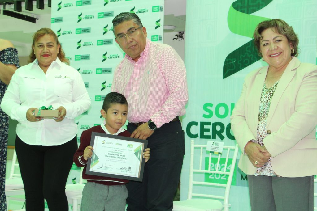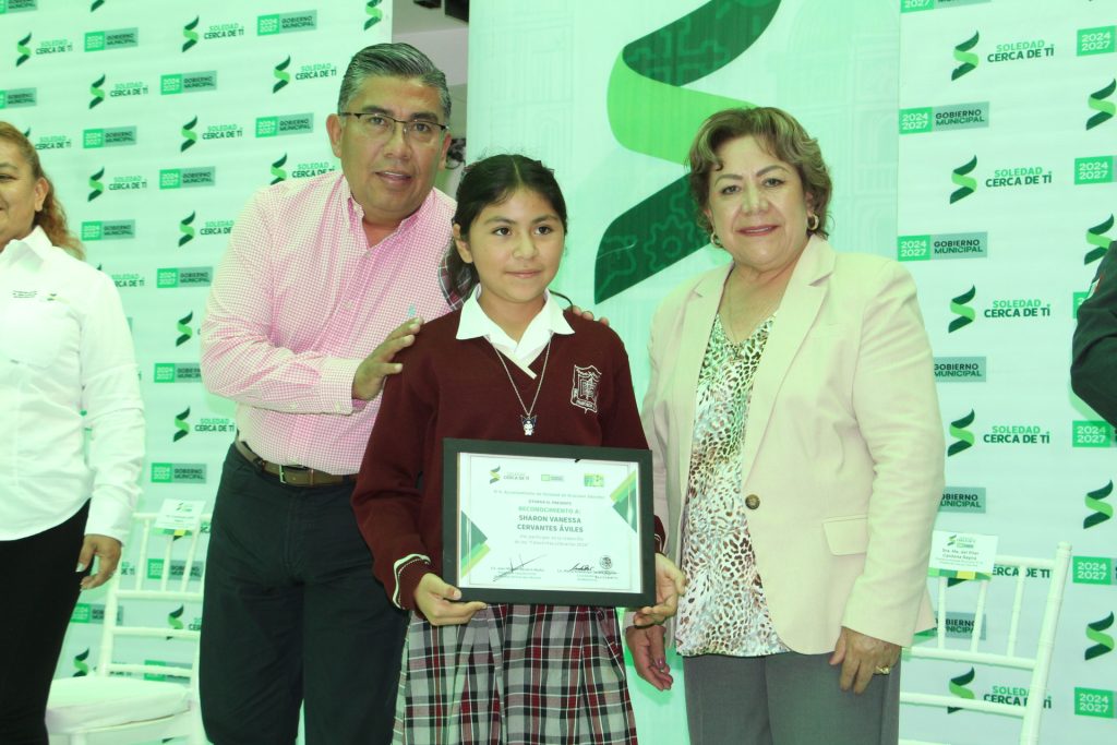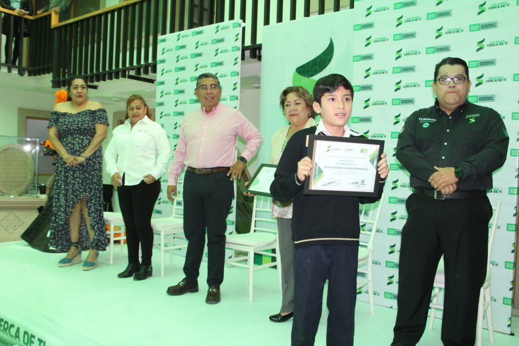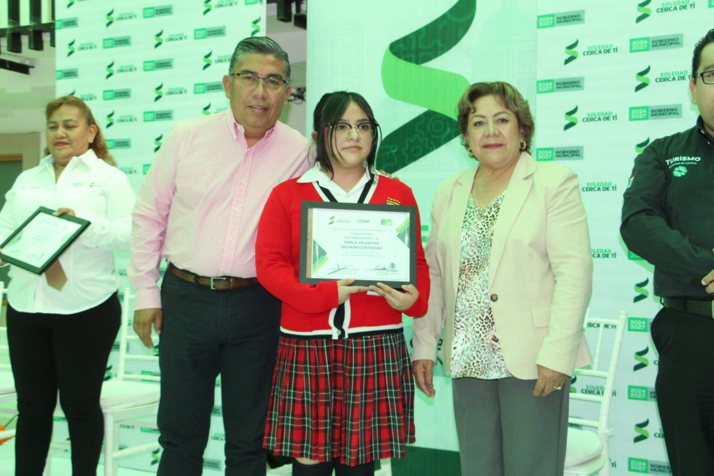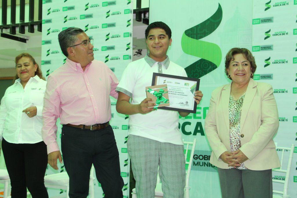Además, se otorgaron menciones honoríficas a Jesús Antonio Valdez Rodríguez, Karla Valentina Beltrán Contreras y Sharon Vanessa Cervantes Avilés, quienes recibieron un reconocimiento especial de manos del Alcalde.