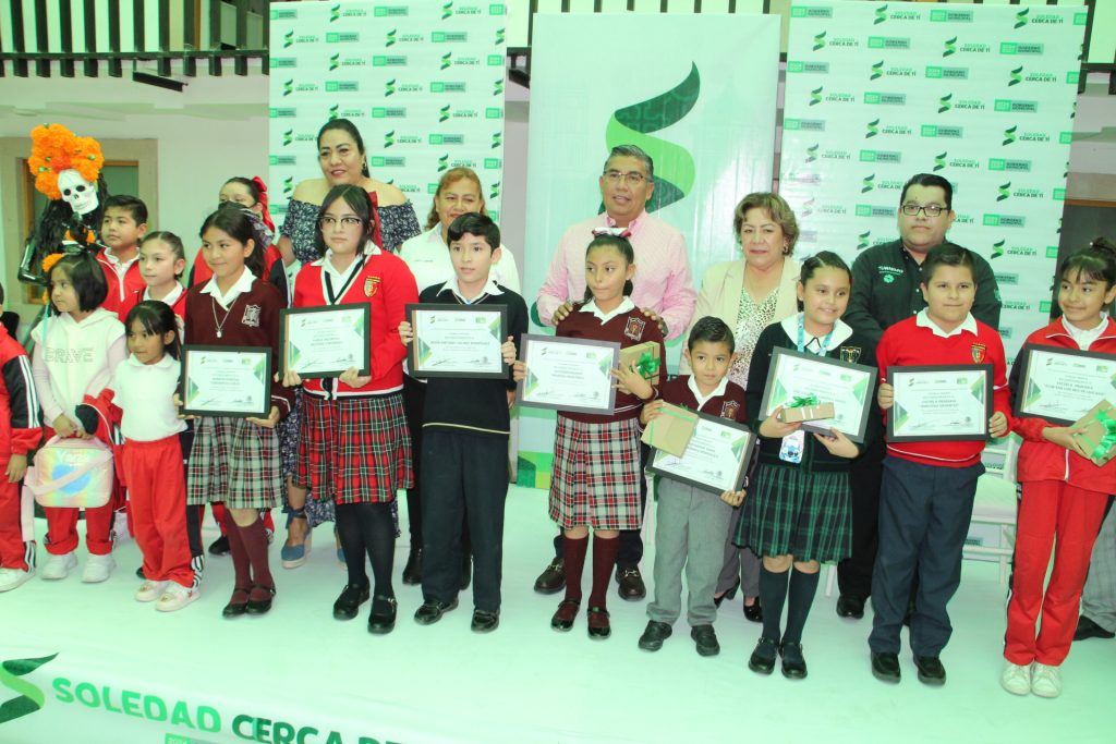 Dando muestra de su compromiso de fomentar la cultura y las tradiciones entre las y los jóvenes y niños, el Alcalde de Soledad de Graciano Sánchez, Juan Manuel Navarro Muñiz llevó a cabo la premiación del Concurso de Calaveritas Literarias y Altares de Muertos, donde se reconoció la creatividad y esfuerzo de las y los pequeños participantes, quienes destacaron con sus creaciones en honor al Día de Muertos, demostrando el gran talento de la niñez soledense.