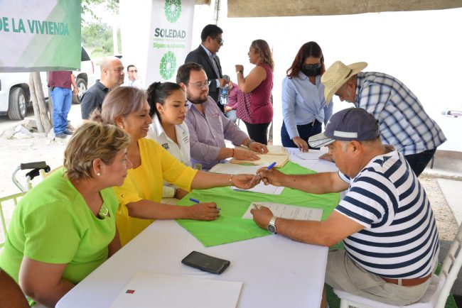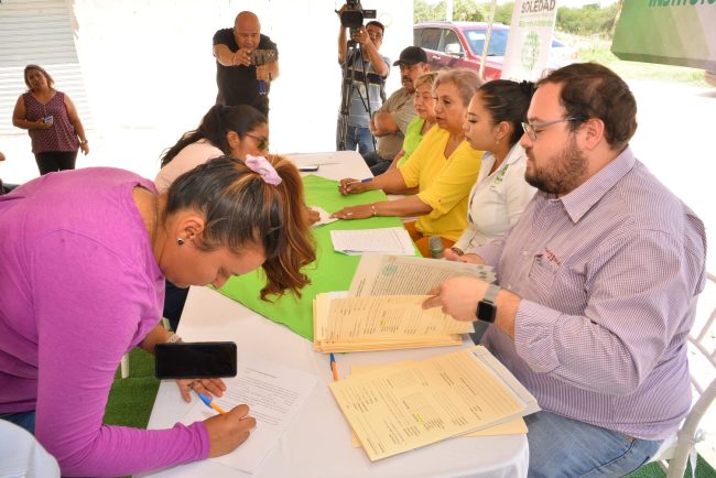 En la colonia Genaro Vázquez, la Alcaldesa de Soledad de Graciano Sánchez, Leonor Noyola Cervantes realizó el proceso de firma de 14 escrituras que ahora brindan y garantizan certeza jurídica a familias sobre sus inmuebles; acción que se desarrolló como parte de proteger el patrimonio de las y los soledenses mediante el trabajo del Instituto Municipal de la Vivienda (INMUVISO).