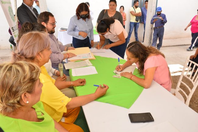 LEONOR NOYOLA ENTREGA FIRMA DE 14 ESCRITURAS PATRIMONIALES A FAMILIAS EN LA COLONIA GENARO VÁZQUEZ