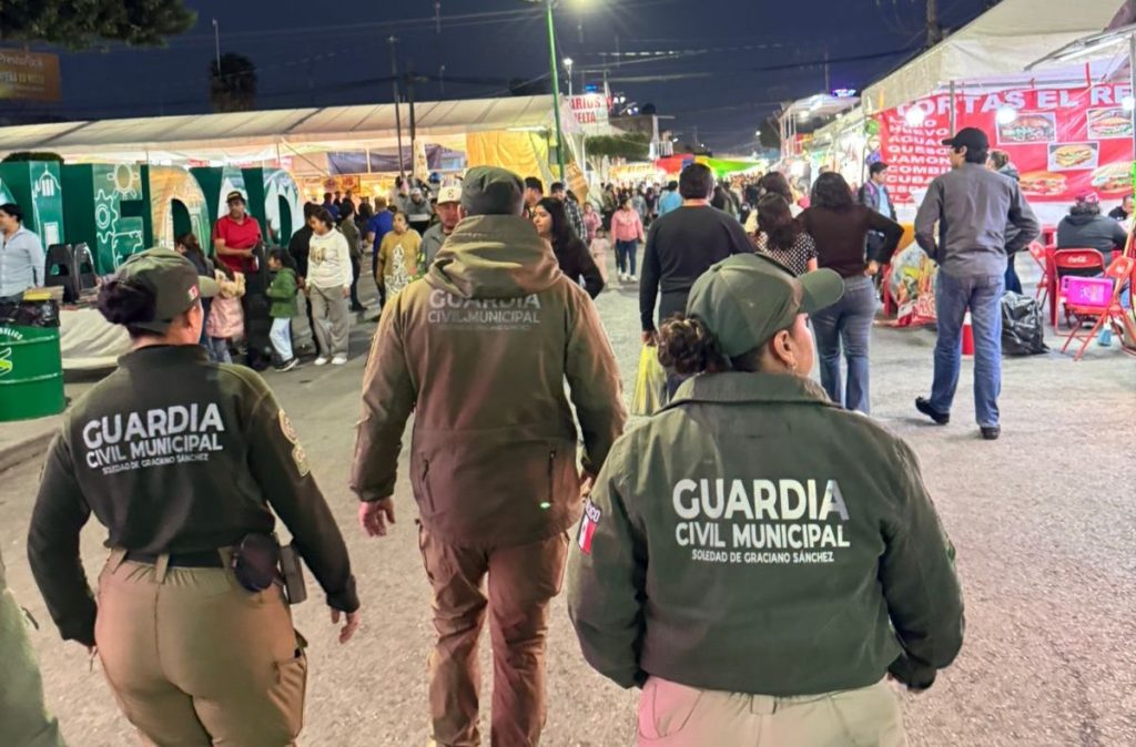La Guardia Civil Municipal de Soledad de Graciano Sánchez informó que mantiene firme el objetivo de garantizar la paz y un ambiente familiar durante el desarrollo de la Feria Nacional de la Enchilada (FENAE) 2026, por lo que el dispositivo permanente de prevención y vigilancia continúa arrojando resultados positivos sin incidencias de relevancia.