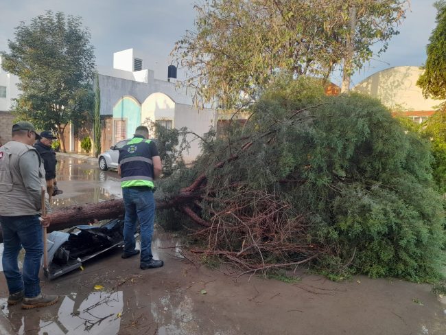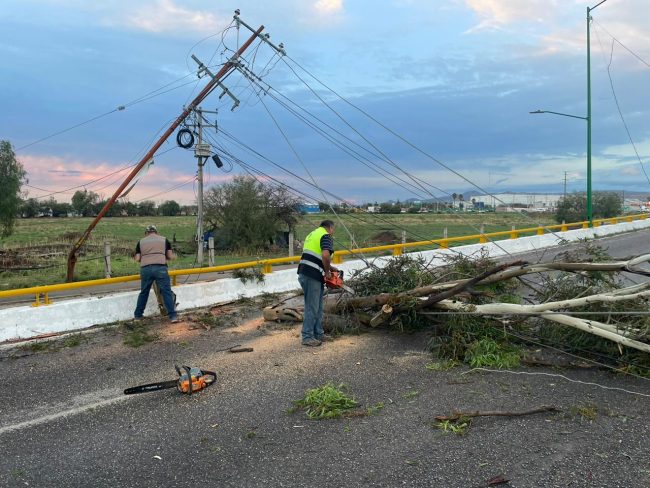 Luego de que se registrara una intensa precipitación pluvial y fuertes ráfagas de viento, la tarde de este domingo, la dirección de Protección Civil Municipal en Soledad de Graciano Sánchez, en colaboración con distintas autoridades de prevención, atendió reportes ciudadanos que refería la caída de árboles, en algunos casos involucrando cables de alta tensión.