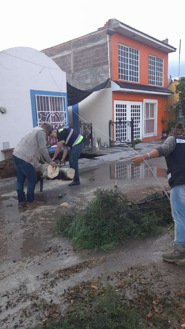 En el marco de un operativo especial, se atendió la caída de un árbol de grandes dimensiones en la colonia San Felipe, donde se colaboró con CFE para el retiro de arbusto de los cables de alta tensión; en la misma colonia, en Camino Antiguo a Soledad se retiró otro árbol.