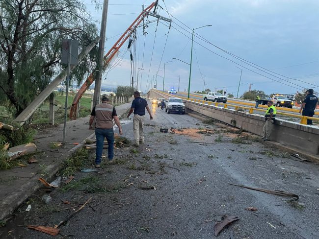En la colonia Santo Tomás, junto a Parques y Jardines se atendió la incidencia de otro árbol que cayó sobre una casa habitación, sin reportar personas lesionadas. Igualmente, en conjunto con Tránsito y Policía Vial y CEPC, se acudió a la carretera a Rioverde sobre carriles centrales del puente vehicular, cerca del Circuito Potosí, donde además se realizaron los cierres viales necesarios y permitir la libre operación de los cuerpos de emergencia y rescate.