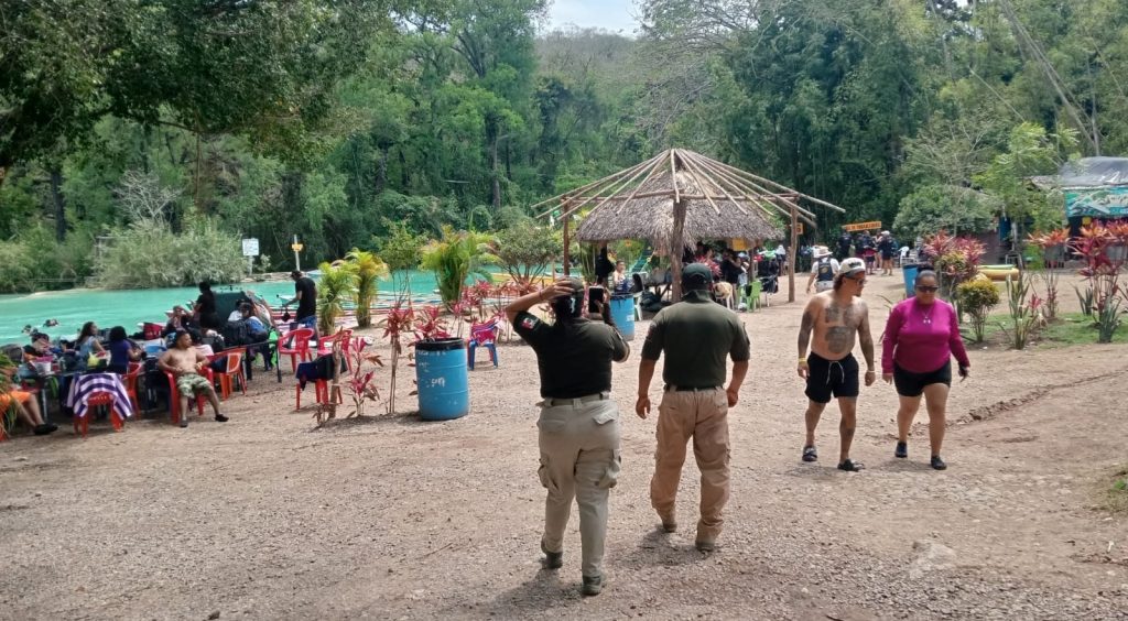La Guardia Civil Estatal (GCE) realiza vigilancia en los municipios de Tamasopo y El Naranjo, en los parajes de Puente de Dios, Siete Cascadas y El Trampolín, con la finalidad de asegurar que la estancia de las y los visitantes sea placentera y segura.