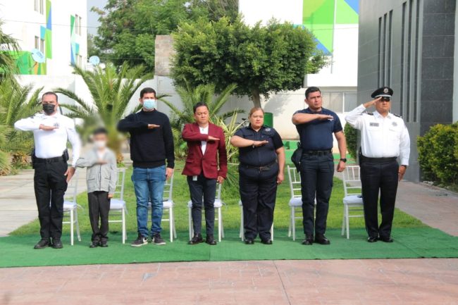 La Escuela Primaria Niños Héroes de la colonia El Morro, fue recibida en la comandancia central de la Dirección General de Seguridad Pública Municipal (DGSPM) de Soledad de Graciano Sánchez, para realizar honores a la bandera.