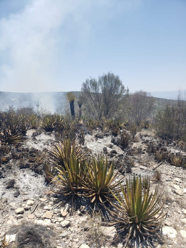 • En coordinación con Protección Civil de Matehuala y Cedral, así como comuneros, se trabajan en la comunidad de La Caja en Matehuala, con una afectación de 12 hectáreas de momento.
