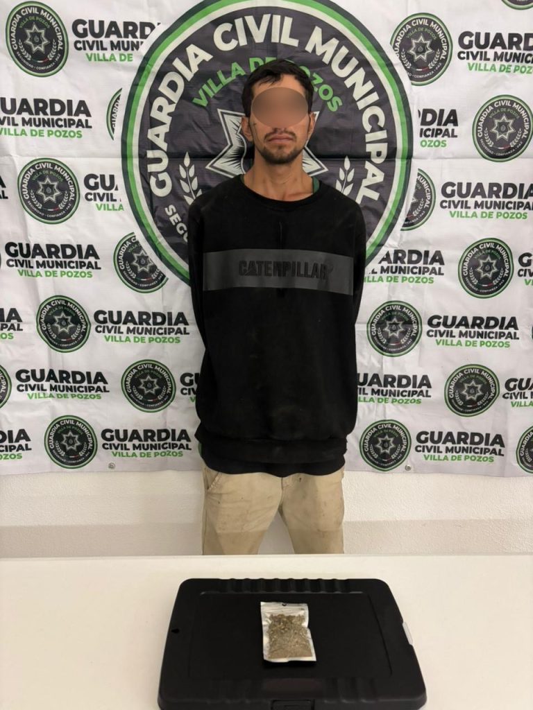 Derivado de los recorridos de seguridad y vigilancia realizados de manera permanente por la Guardia Civil Municipal de Villa de Pozos, durante la última semana se logró la detención de tres personas, como resultado de las acciones preventivas implementadas en distintos puntos del municipio.