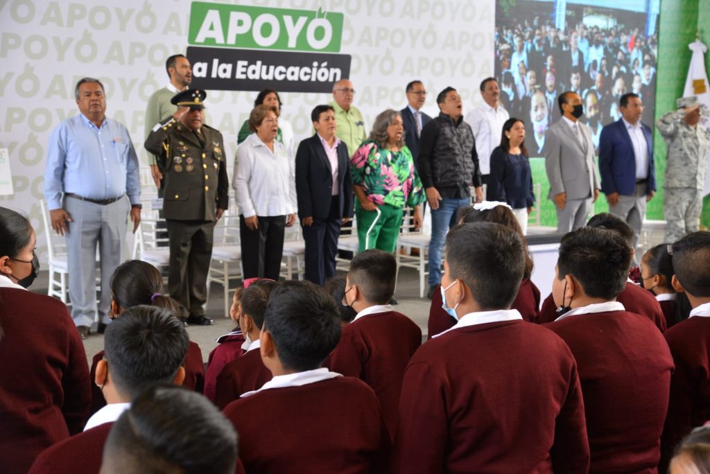 Asimismo, hizo entrega simbólica de paquetes de libros de texto gratuito a estudiantes de diferentes niveles educativos, y resaltó que la educación es el pilar en la formación de ciudadanas y ciudadanos responsables, capaces de contribuir al desarrollo de la sociedad. La educación no sólo se enfoca en el conocimiento académico, sino también en el crecimiento personal y la formación de valores, asentó.