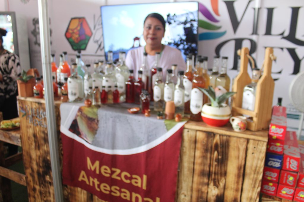 La expositora María Jaime Ibarra ofrece a sus clientes y a toda la gente un producto que es muy conocido como lo es mezcal.
