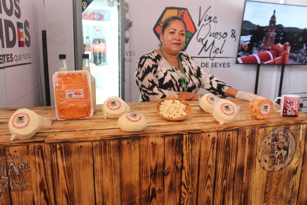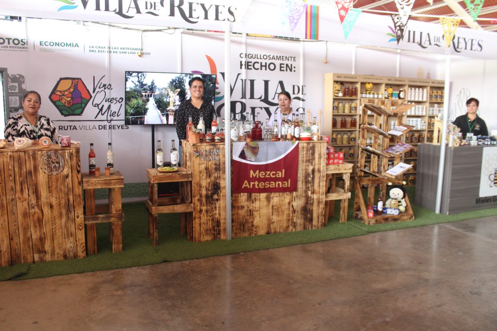 En el pabellón artesanal de la Feria Nacional Potosina (FENAPO) del stand en el que participan productores de quesos, miel orgánica y mezcal que es elaborado de forma artesanal, y los artesanos villarreyenses exhiben sus artículos elaborados a mano.