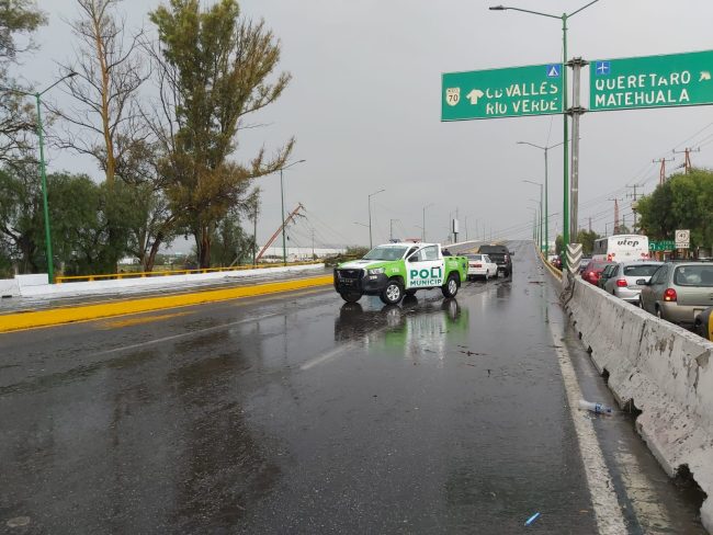 La Dirección de Tránsito Vial de Soledad de Graciano Sánchez, informa a la ciudadanía del cierre a la circulación vial en carriles centrales de la carretera a Rioverde, en ambos sentidos, específicamente antes de subir al puente de Av. José de Gálvez hasta después de Circuito Potosí.