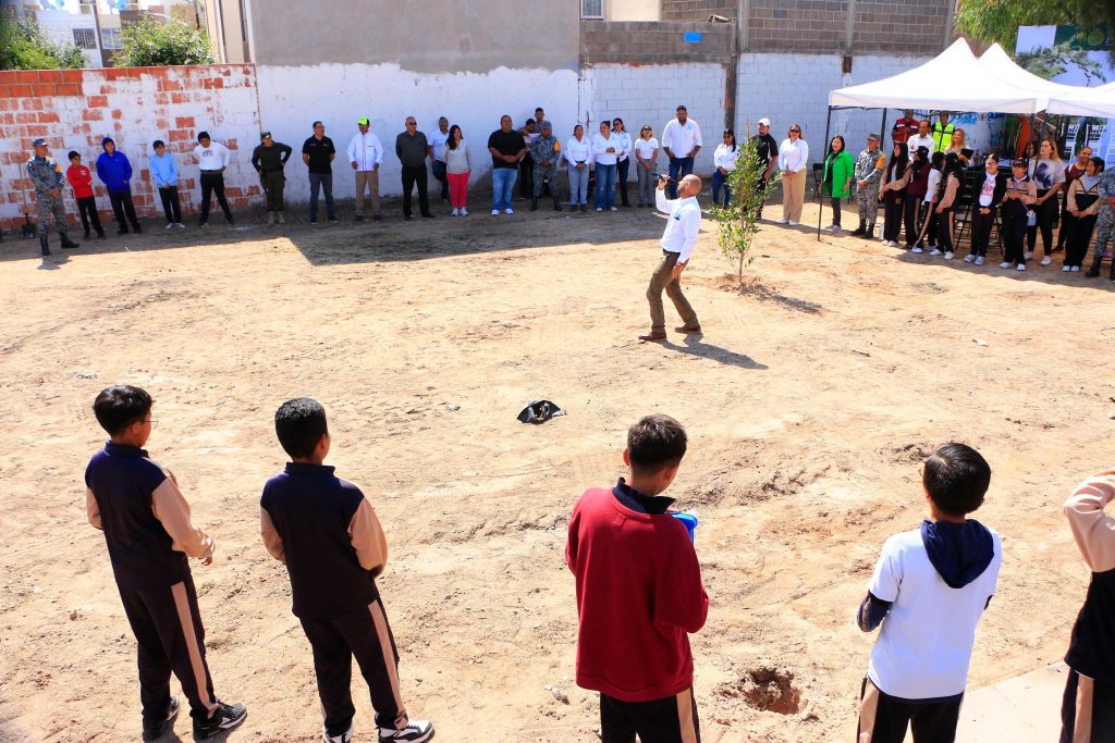 Vecinos, estudiantes y funcionarios municipales y federales se sumaron con entusiasmo a una jornada de reforestación en un espacio previamente rescatado del abandono de administraciones pasadas, que era un foco de contaminación y deterioro urbano; gracias a la intervención oportuna de Servicios Municipales, se realizaron labores de limpieza y retiro de maleza y basura, logrando recuperar este espacio público en beneficio de las familias de esta colonia.