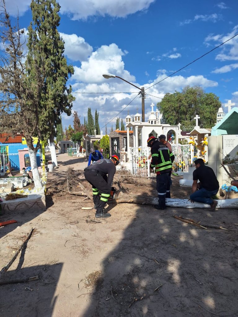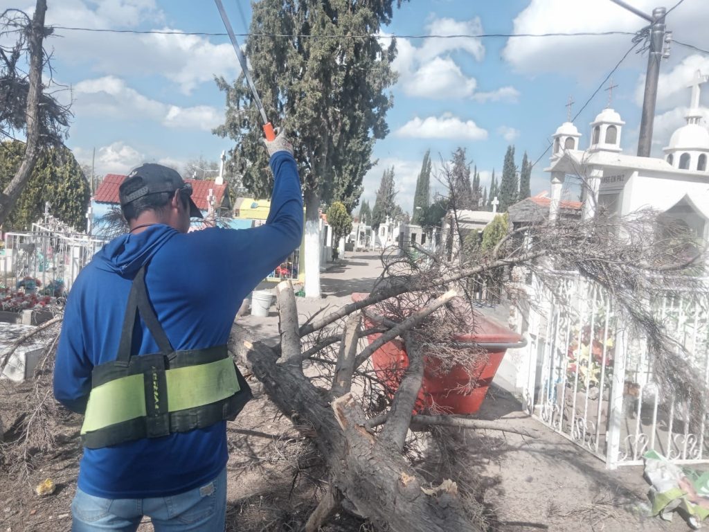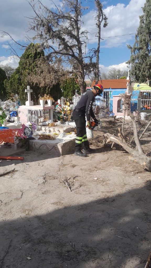 Debido a las fuertes ráfagas de viento registradas en los últimos días, la Dirección de Cementerios Municipales, llevó a cabo la poda de árboles que representaban riesgo de caer en el Panteón Municipal, informó el titular del área Guillermo Bárcenas Camacho, quien destacó la importancia de estas acciones para garantizar la seguridad en el lugar.
